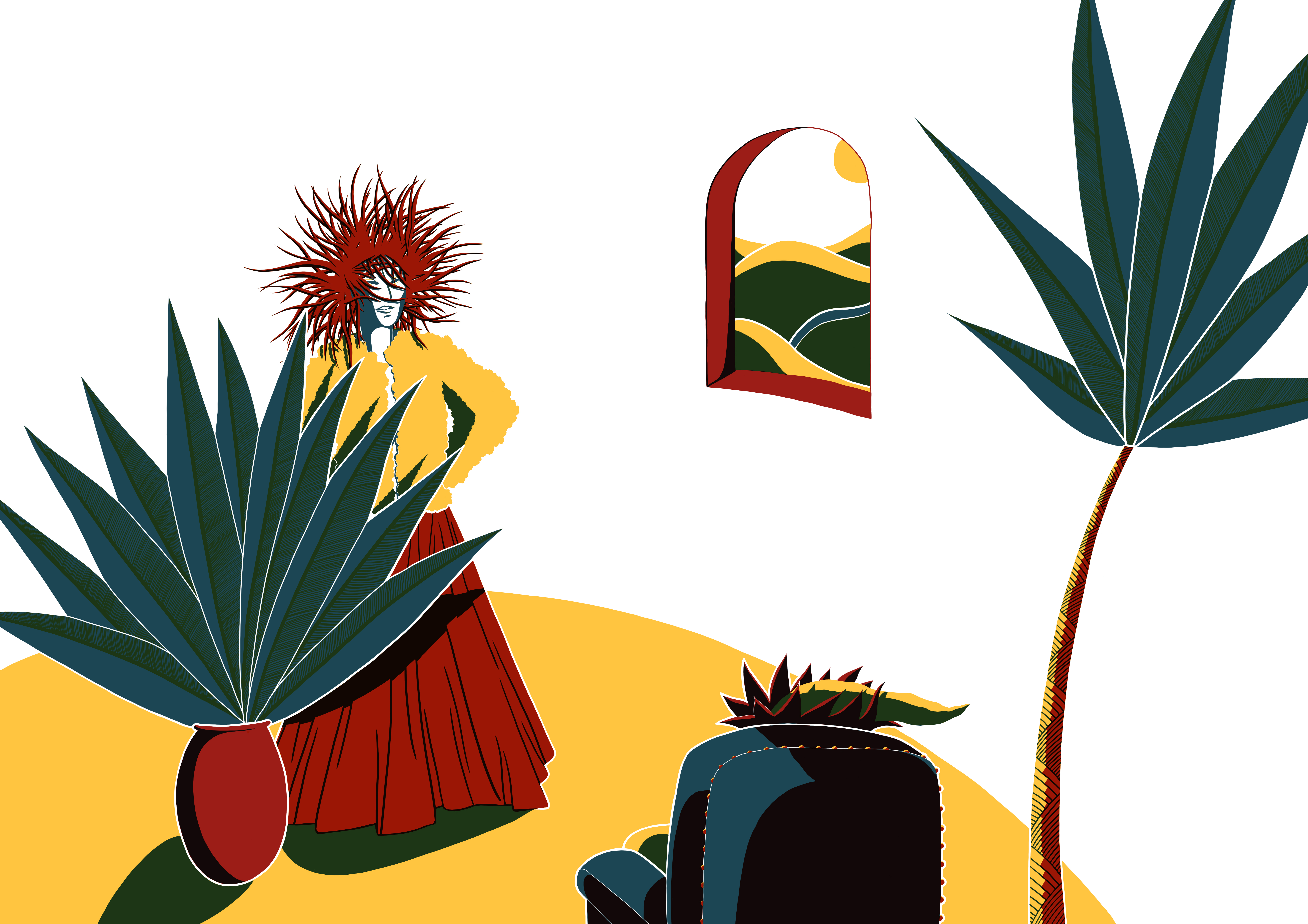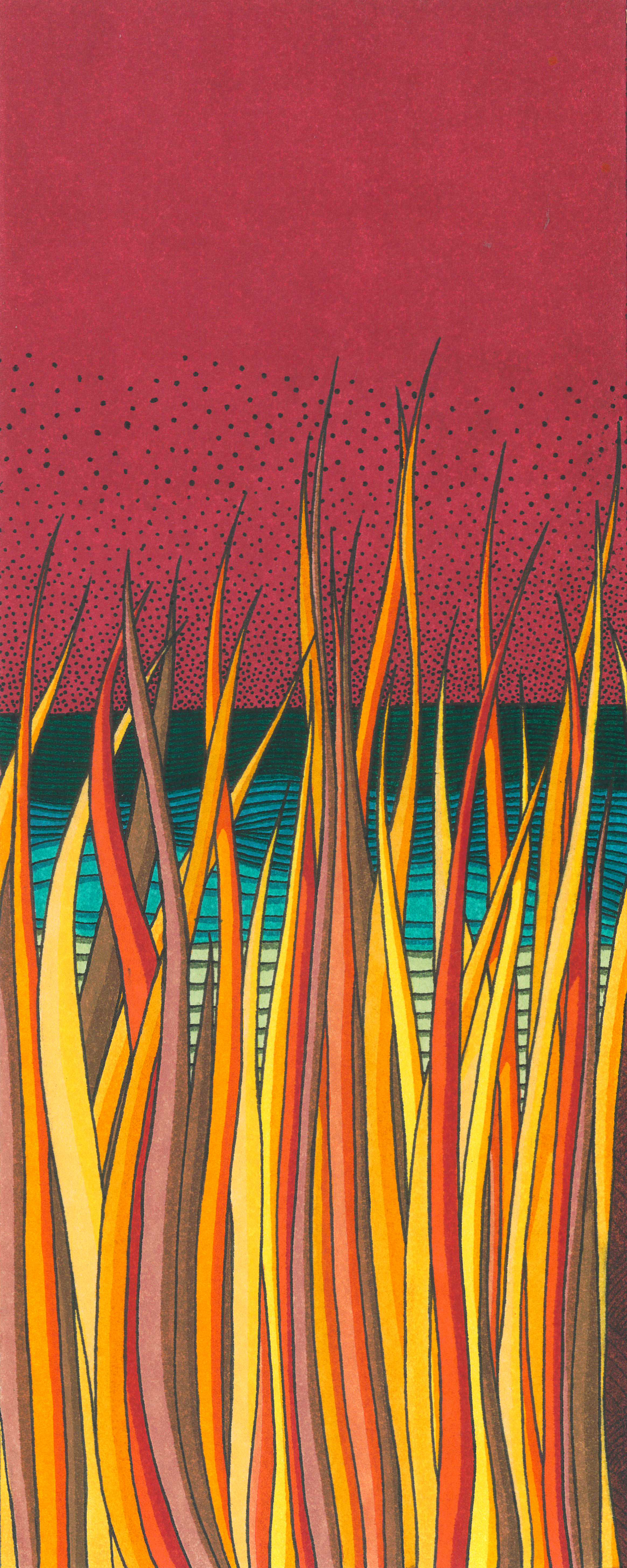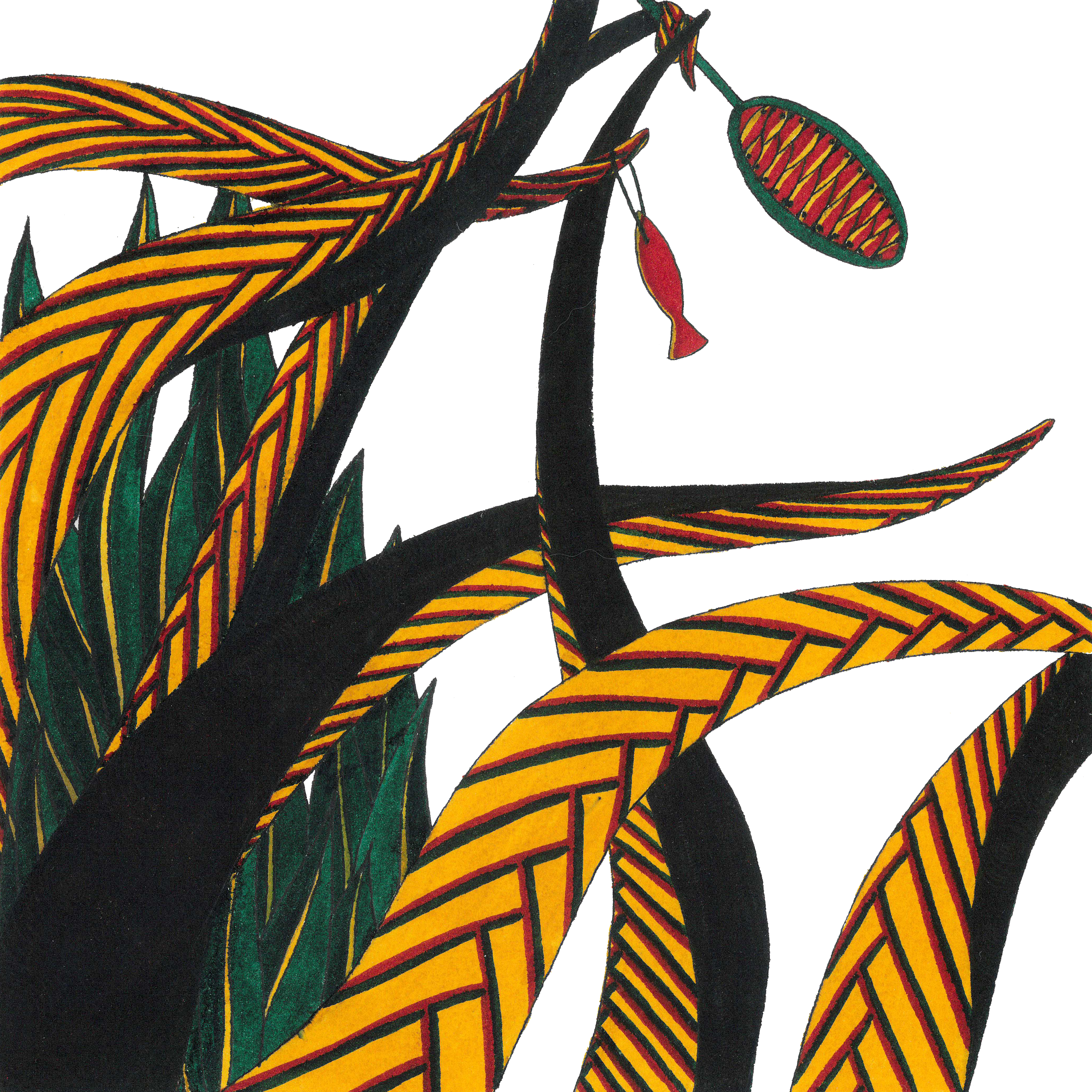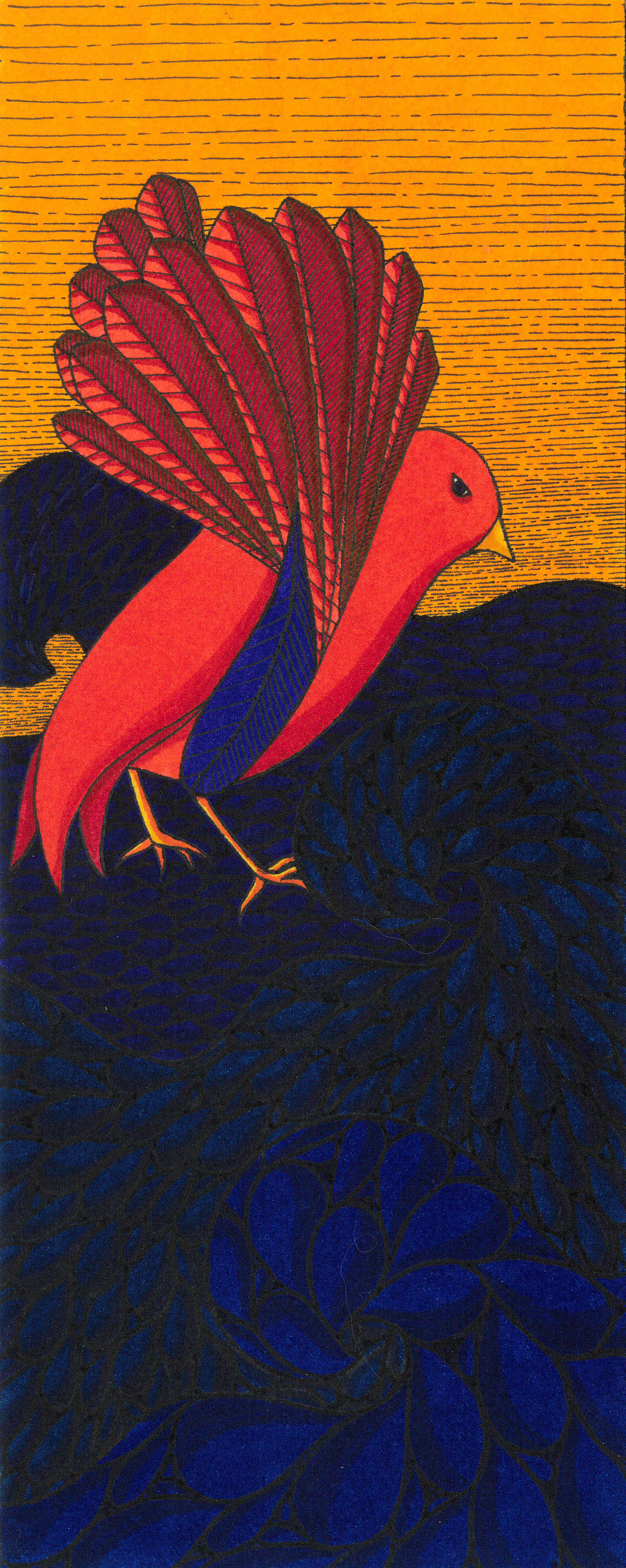 Sur le bord du paradis – 46cm x 55 cm – encre de Chine, crayons de couleur – VENDUE