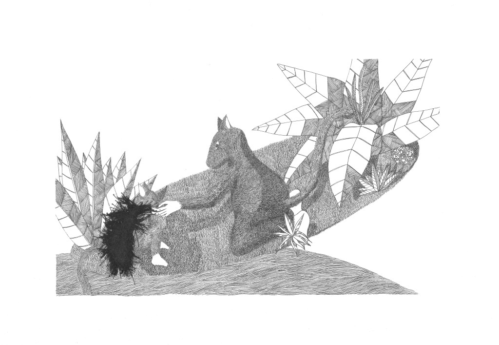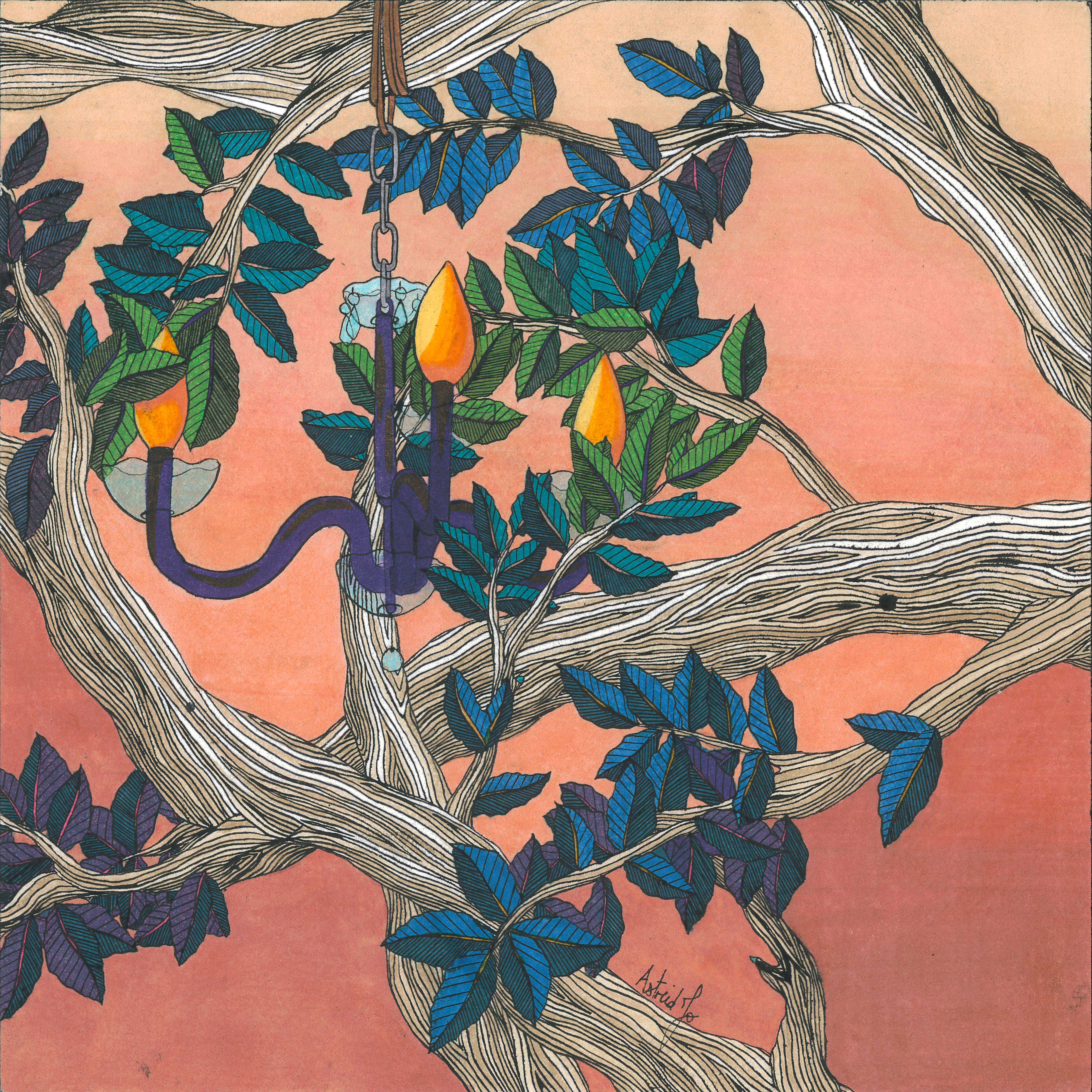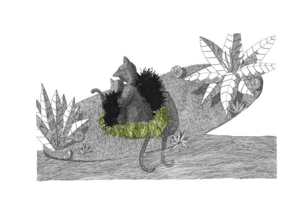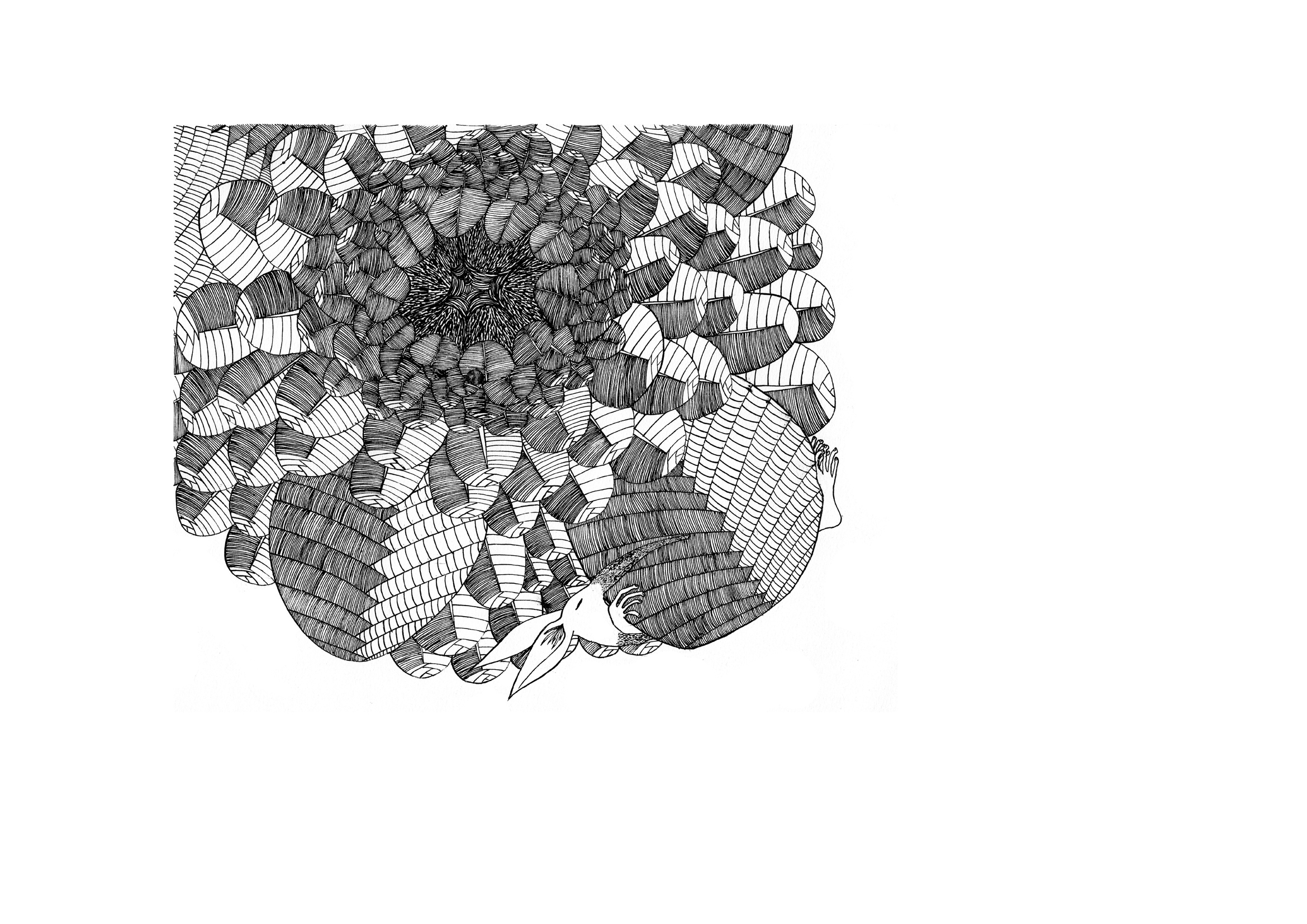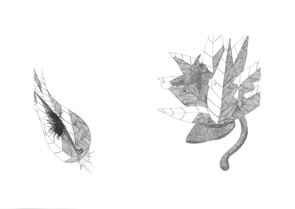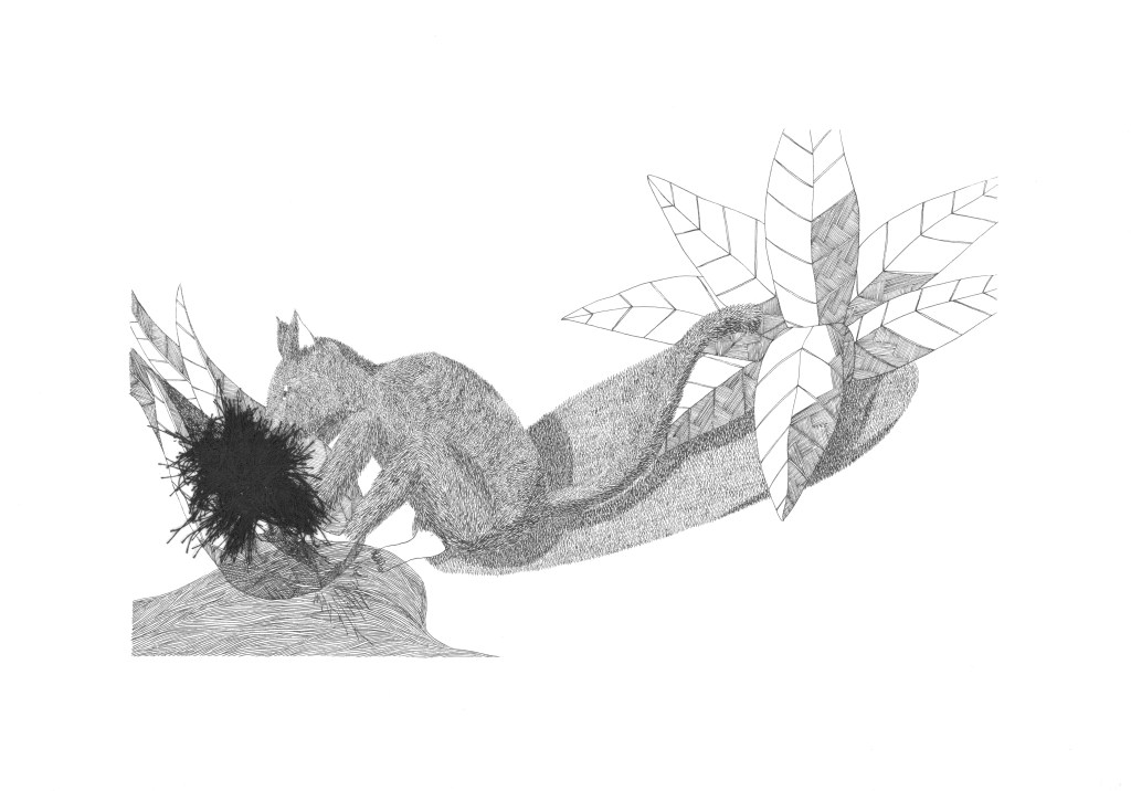 Daydream or nightmare? – 25cm x 25 cm – encre de Chine, crayons de couleur – 150€ : https://astridjo.com/contact/
