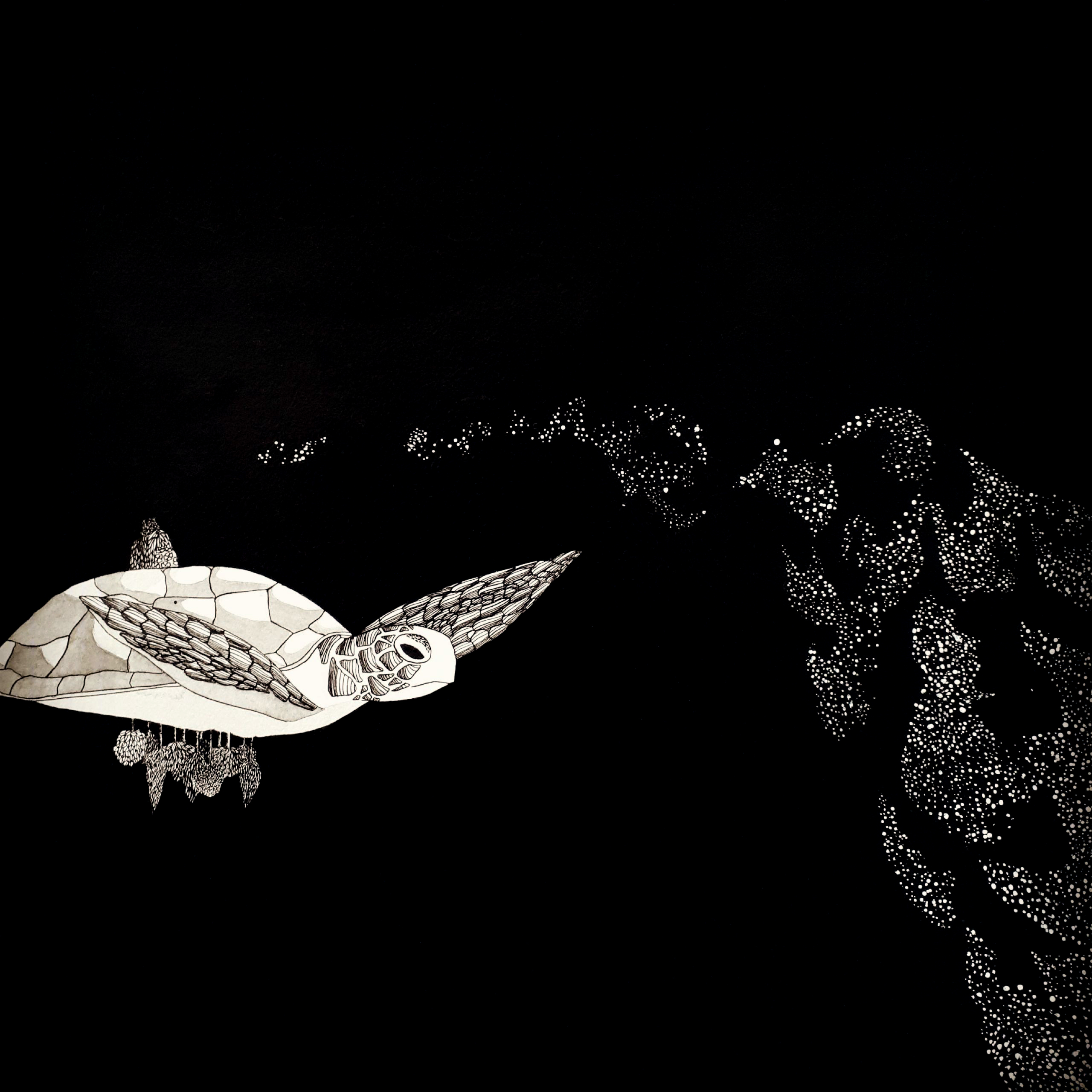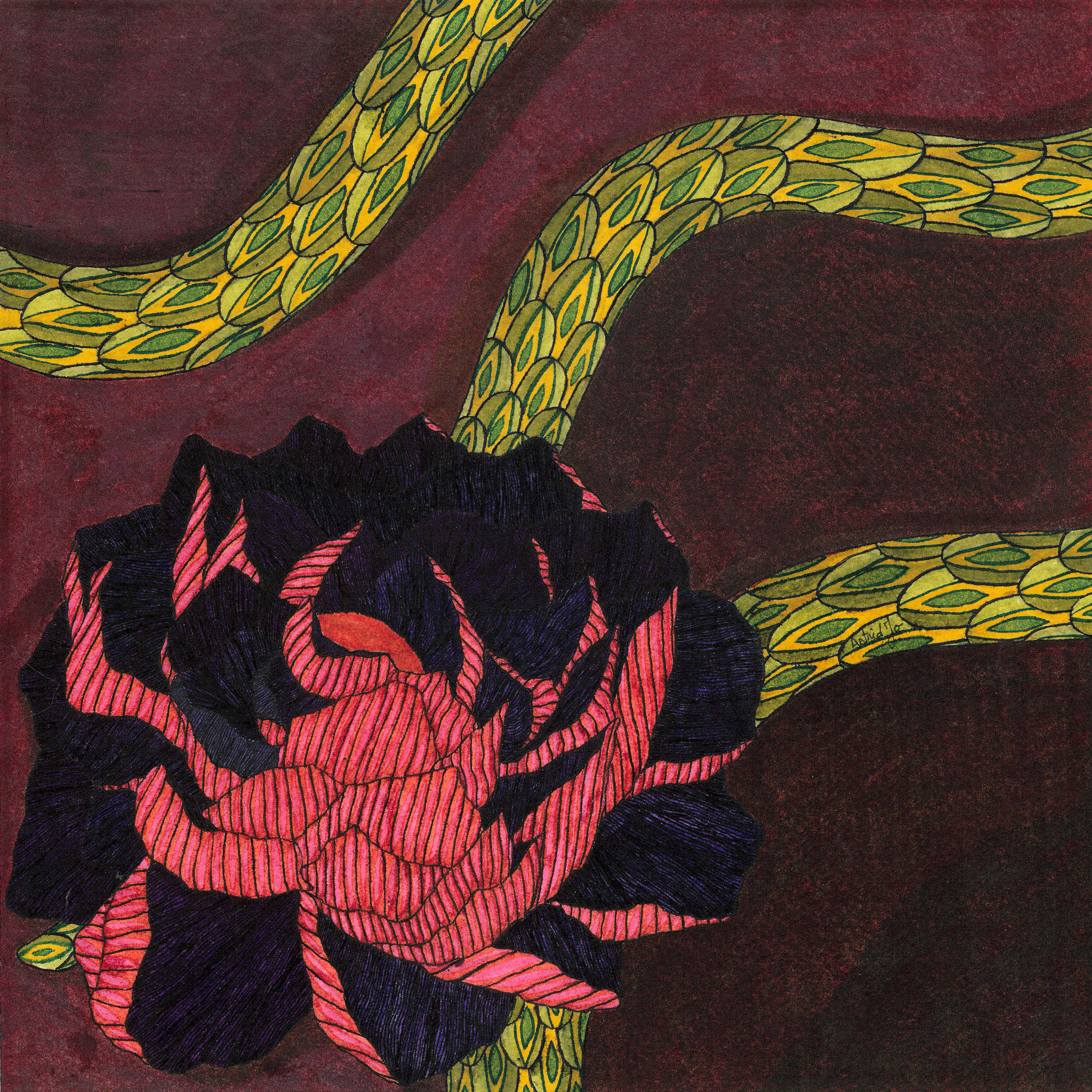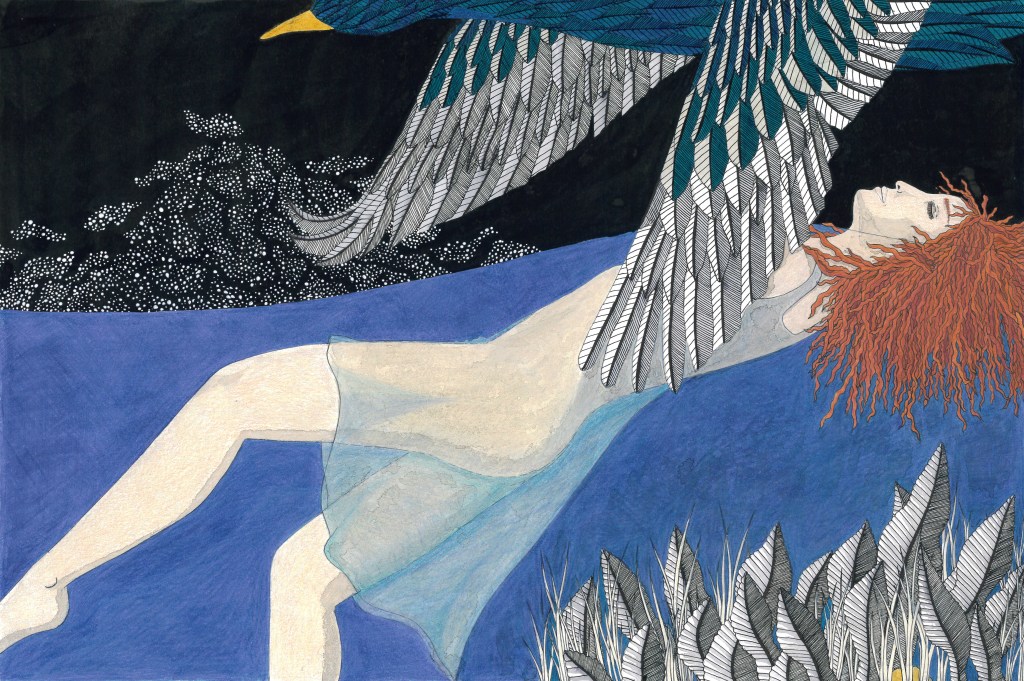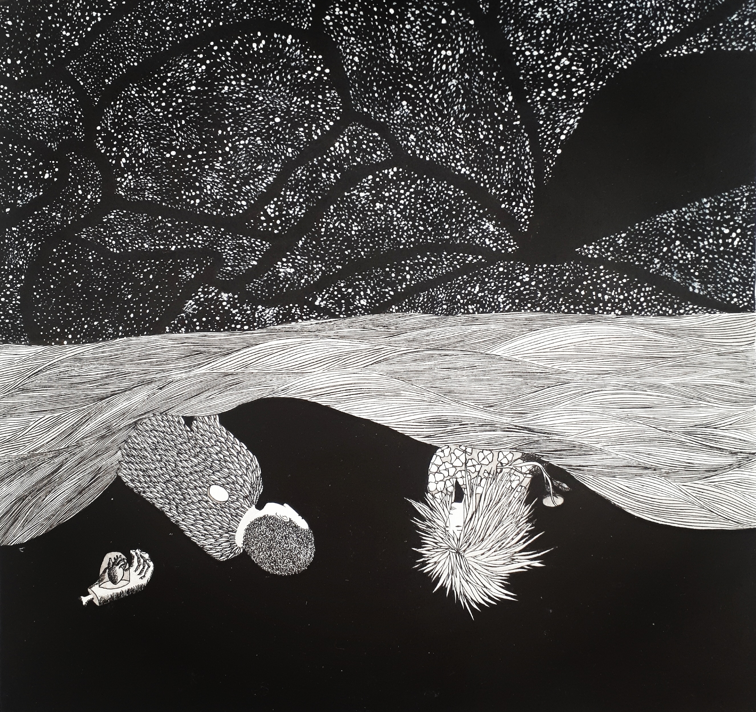 Daydream or nightmare? – 25cm x 25 cm – encre de Chine, crayons de couleur – 150€ : https://astridjo.com/contact/