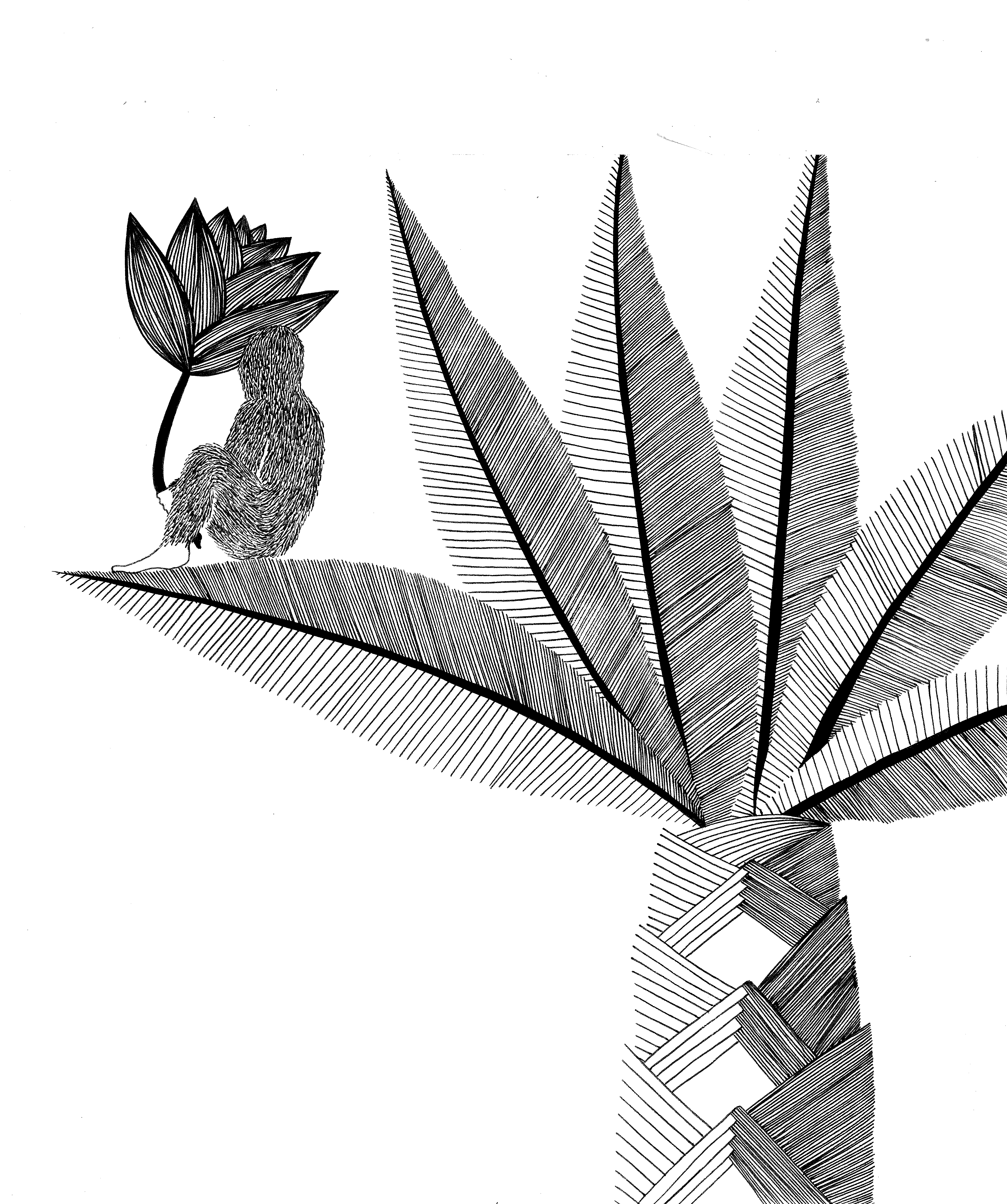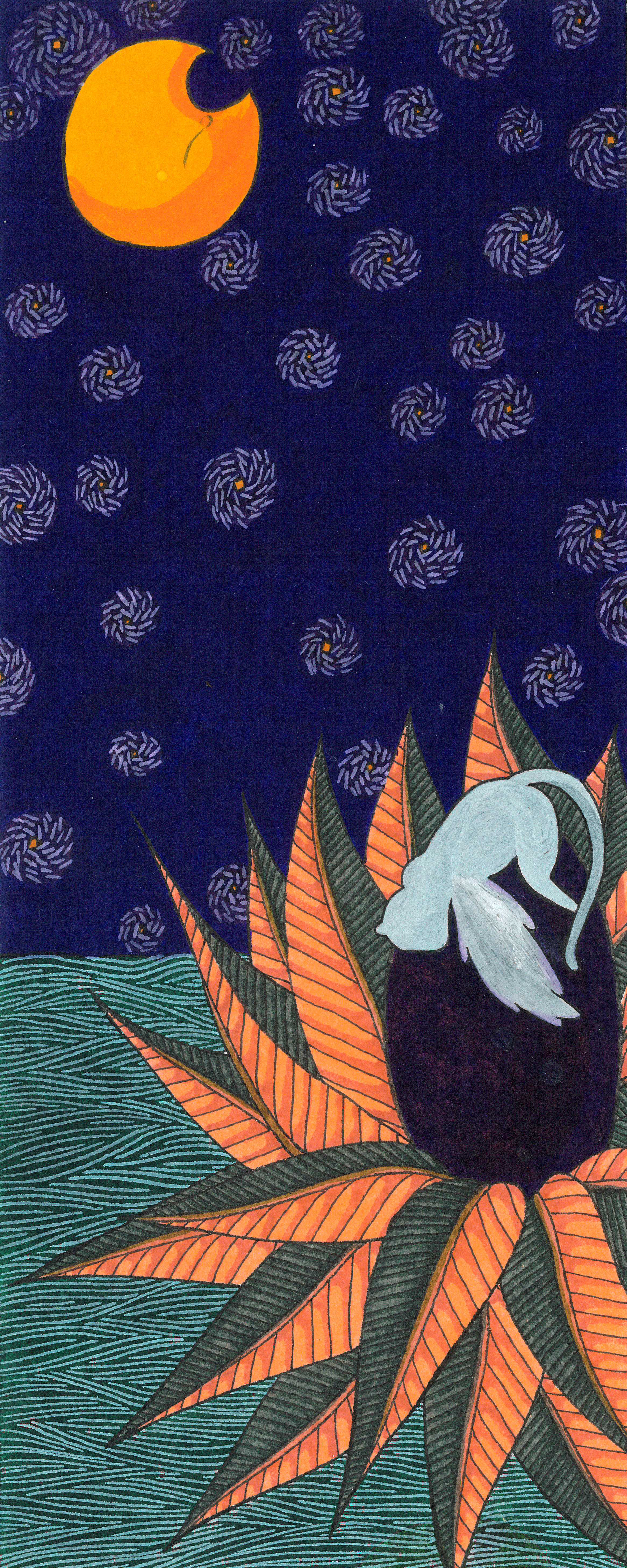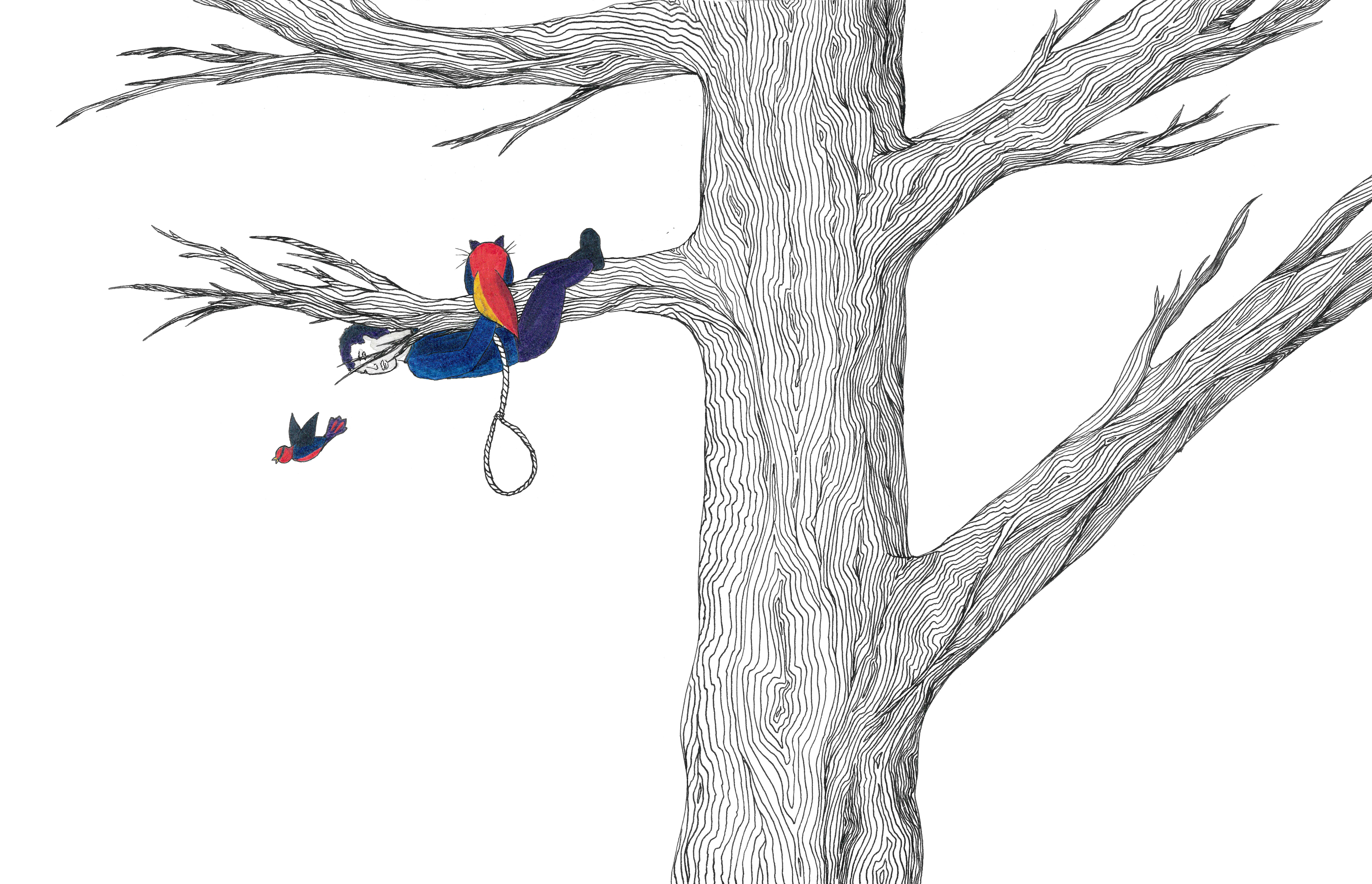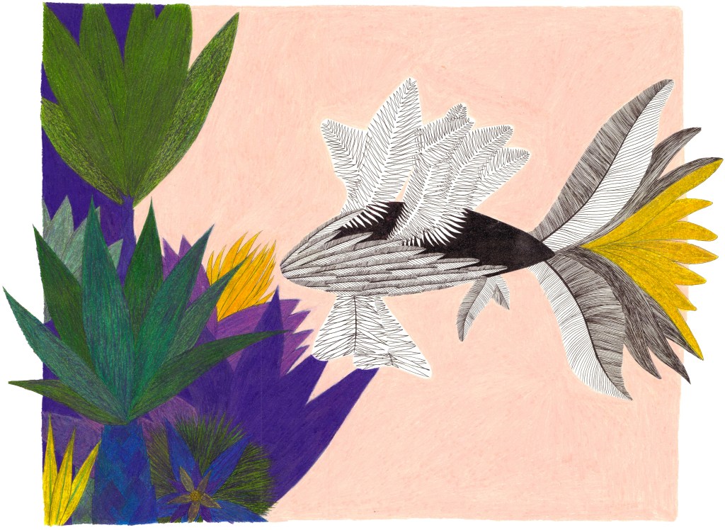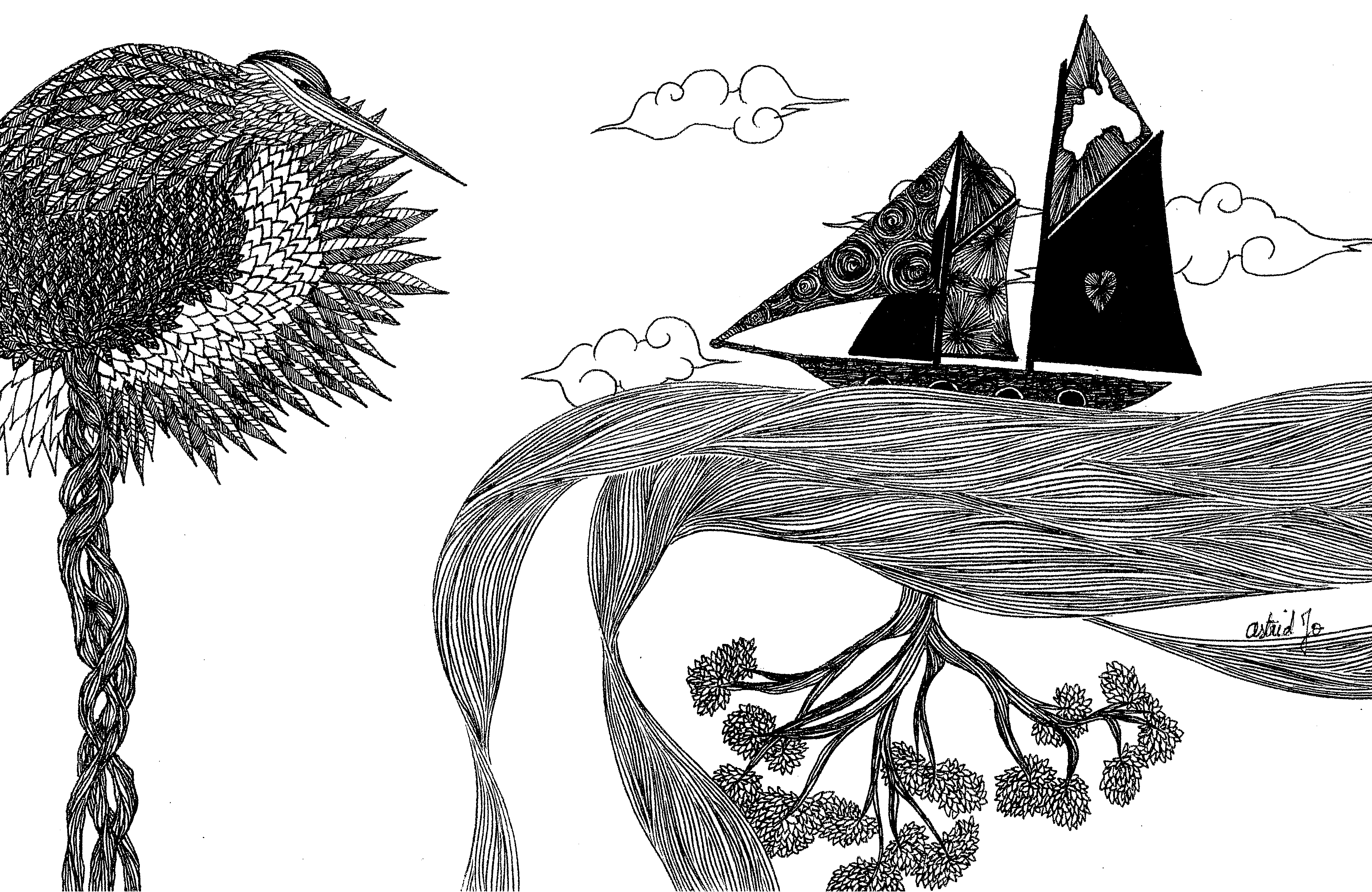 Daydream or nightmare? – 25cm x 25 cm – encre de Chine, crayons de couleur – 150€ : https://astridjo.com/contact/