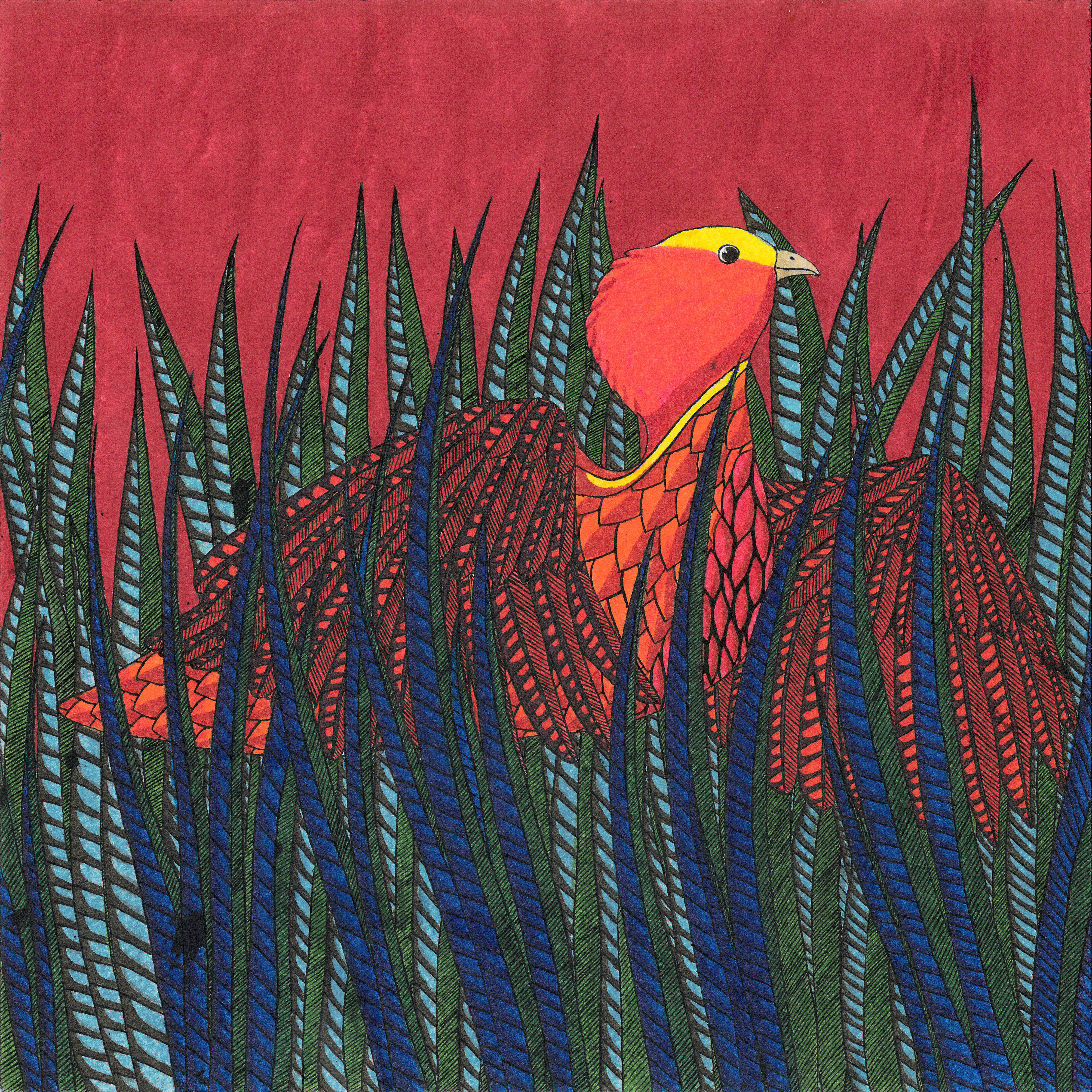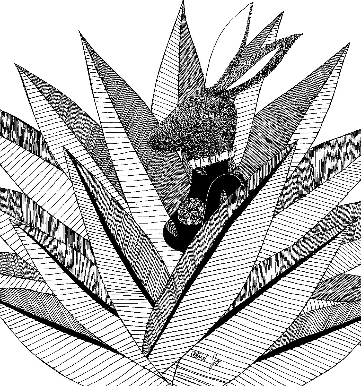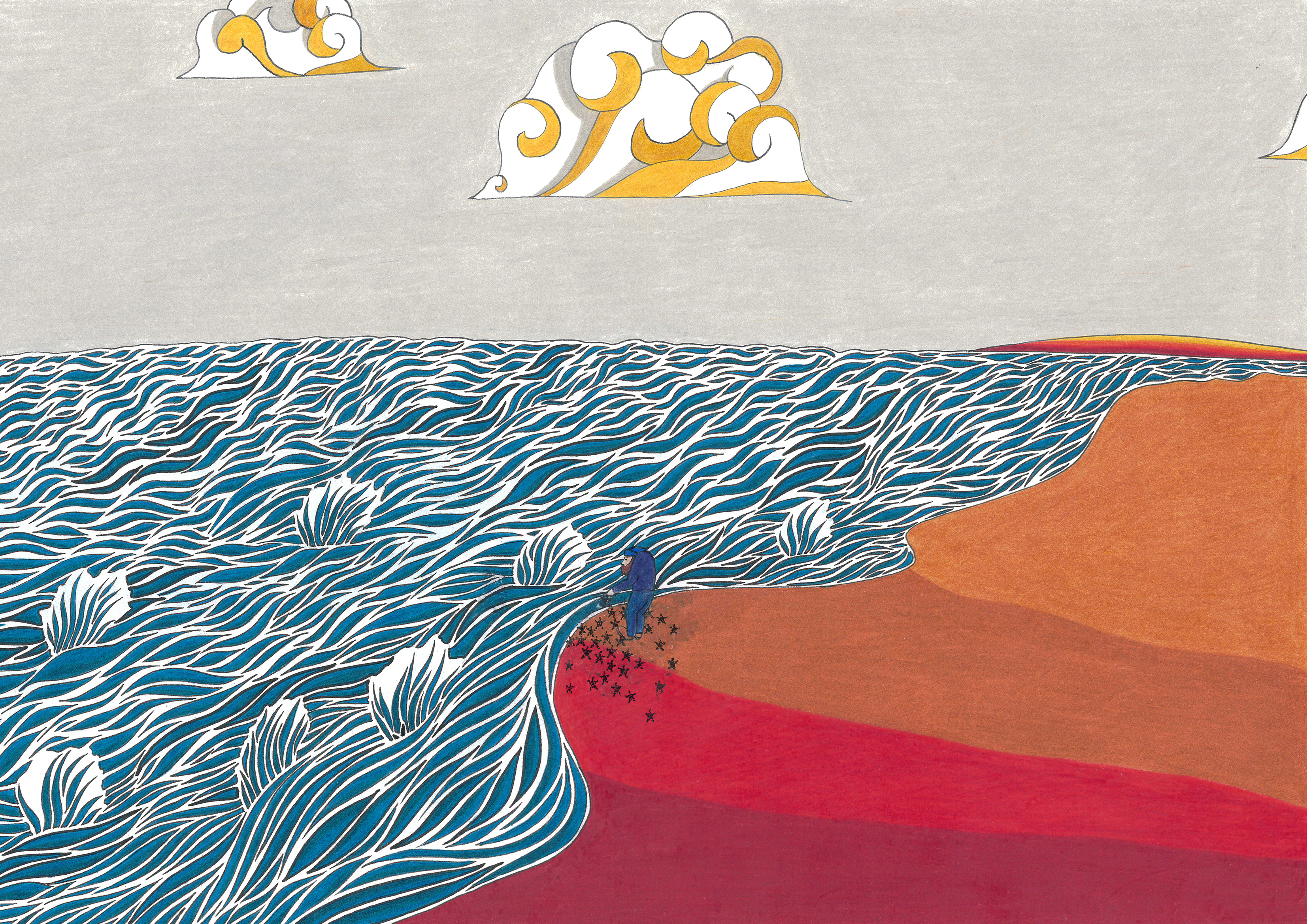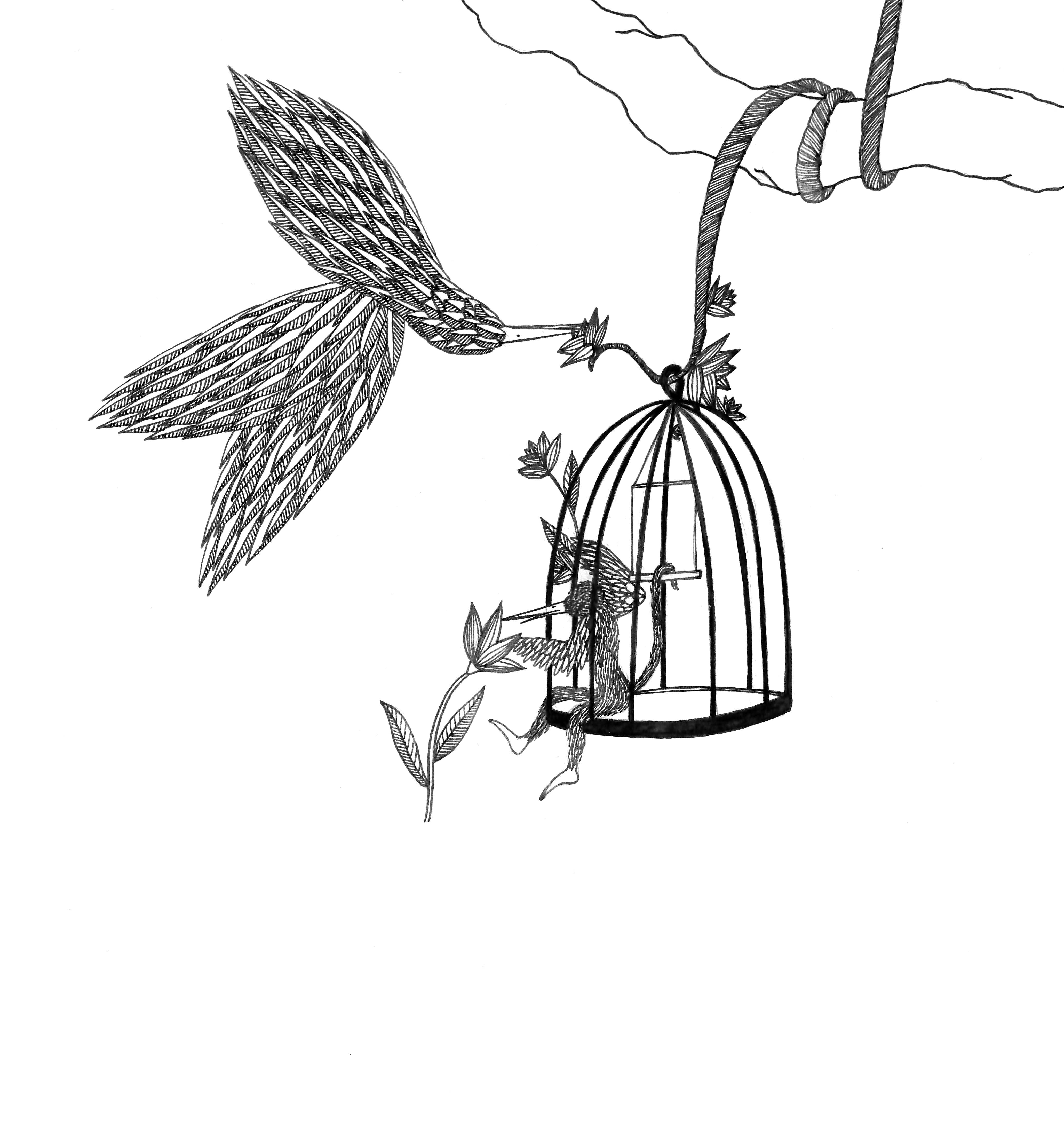 Daydream or nightmare? – 25cm x 25 cm – encre de Chine, crayons de couleur – 150€ : https://astridjo.com/contact/
