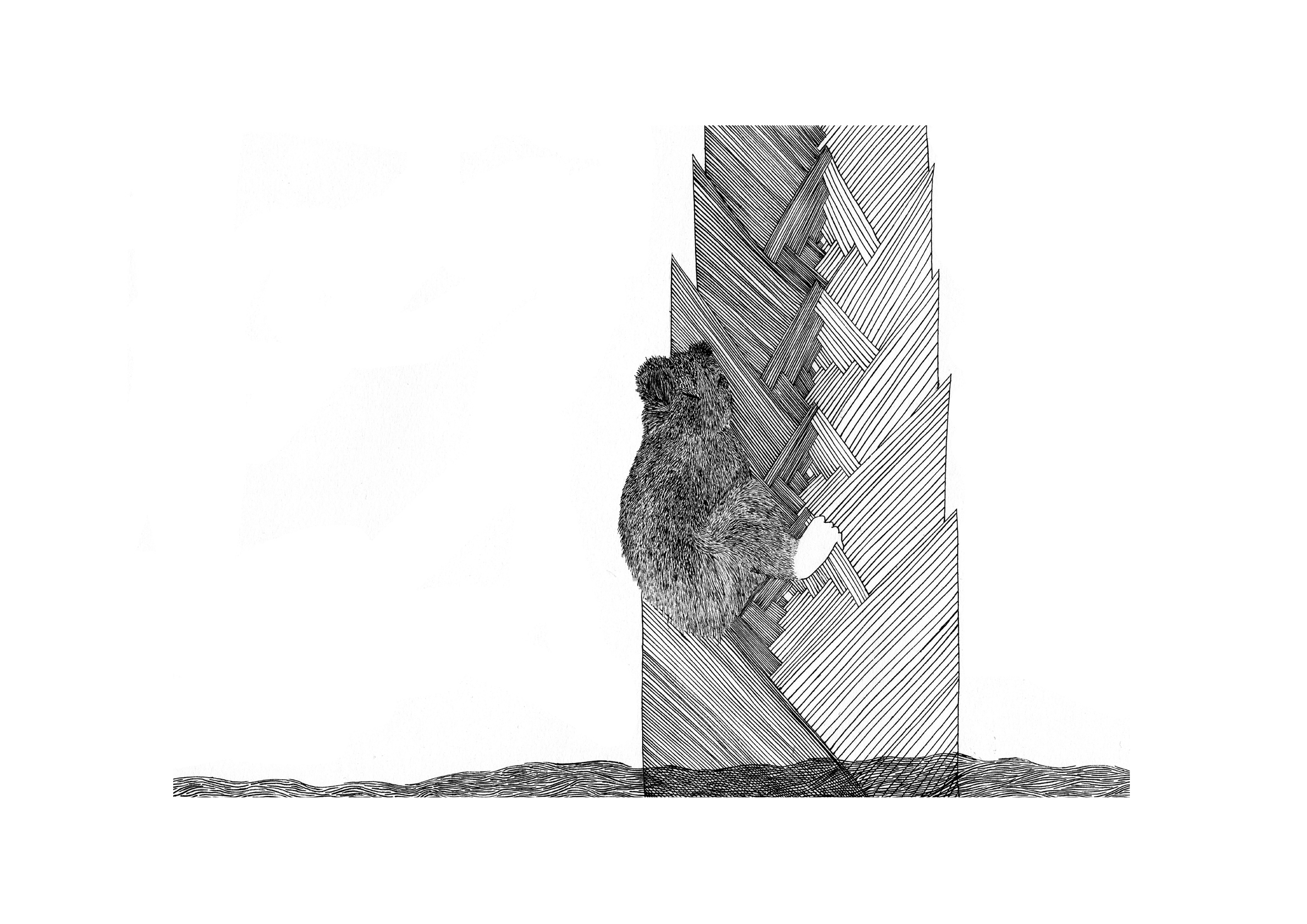 Zizi Cabane – encre de Chine, crayons de couleur – Illustration des rabats – Editions LE TRIPODE, 2022