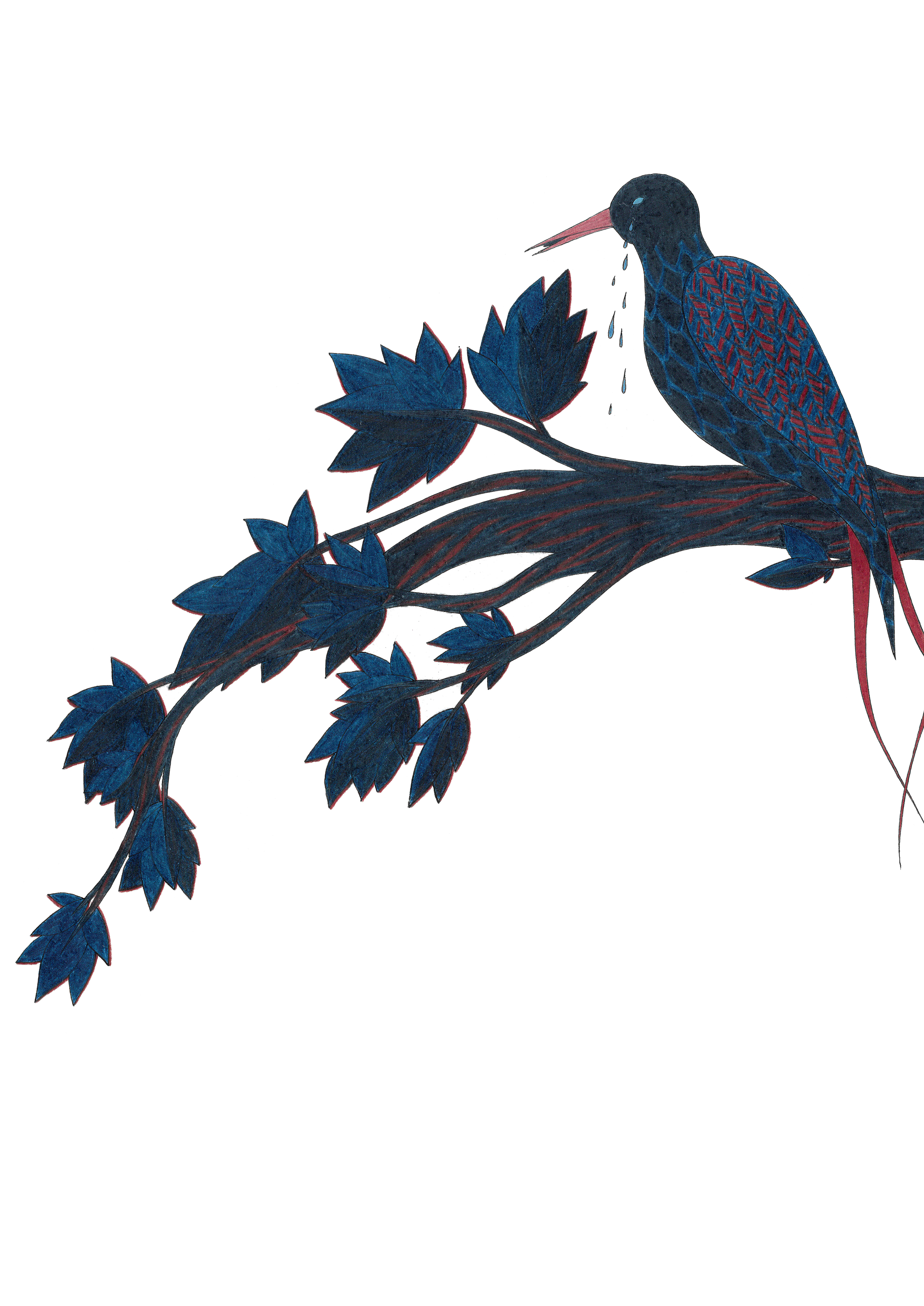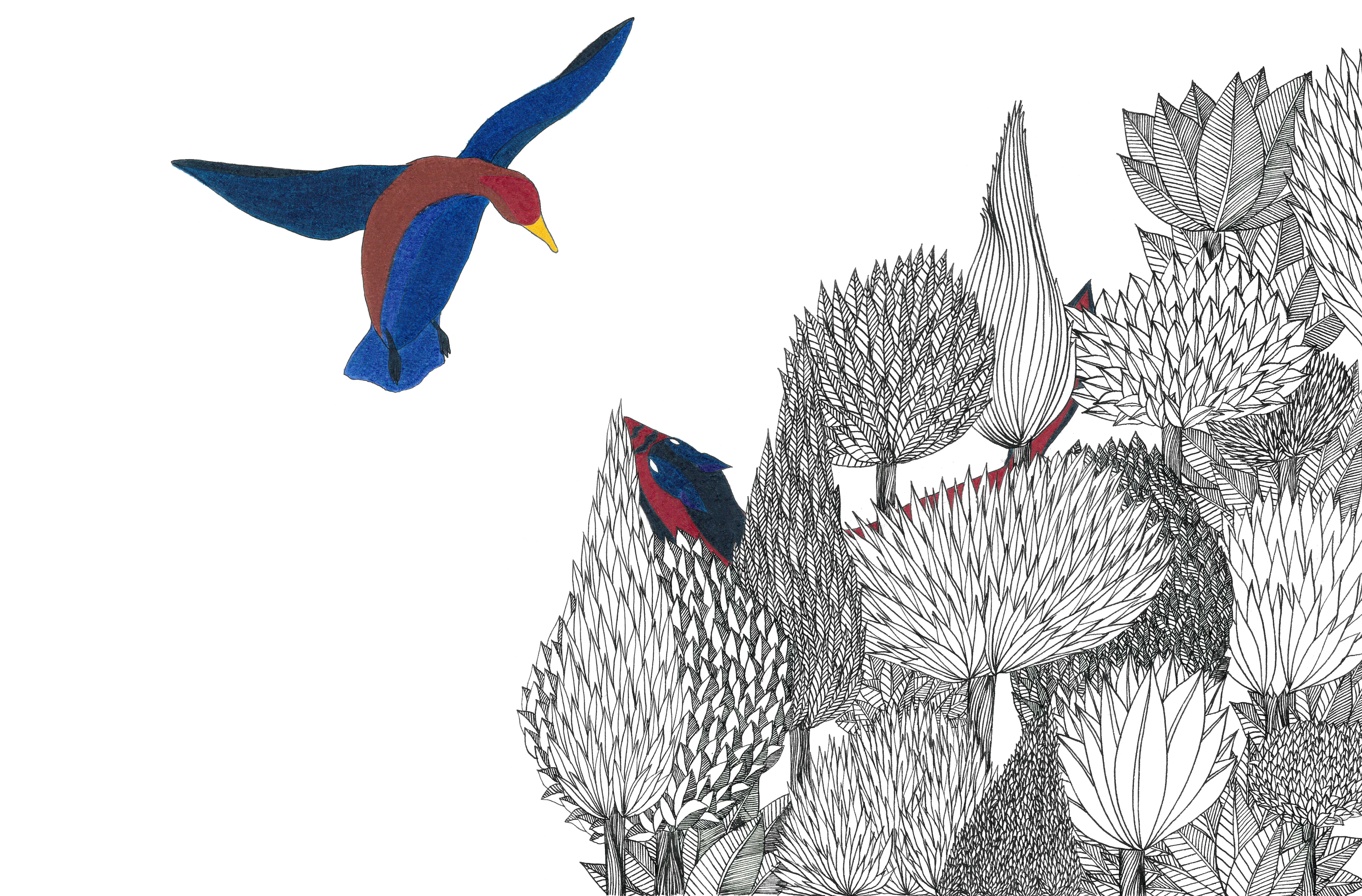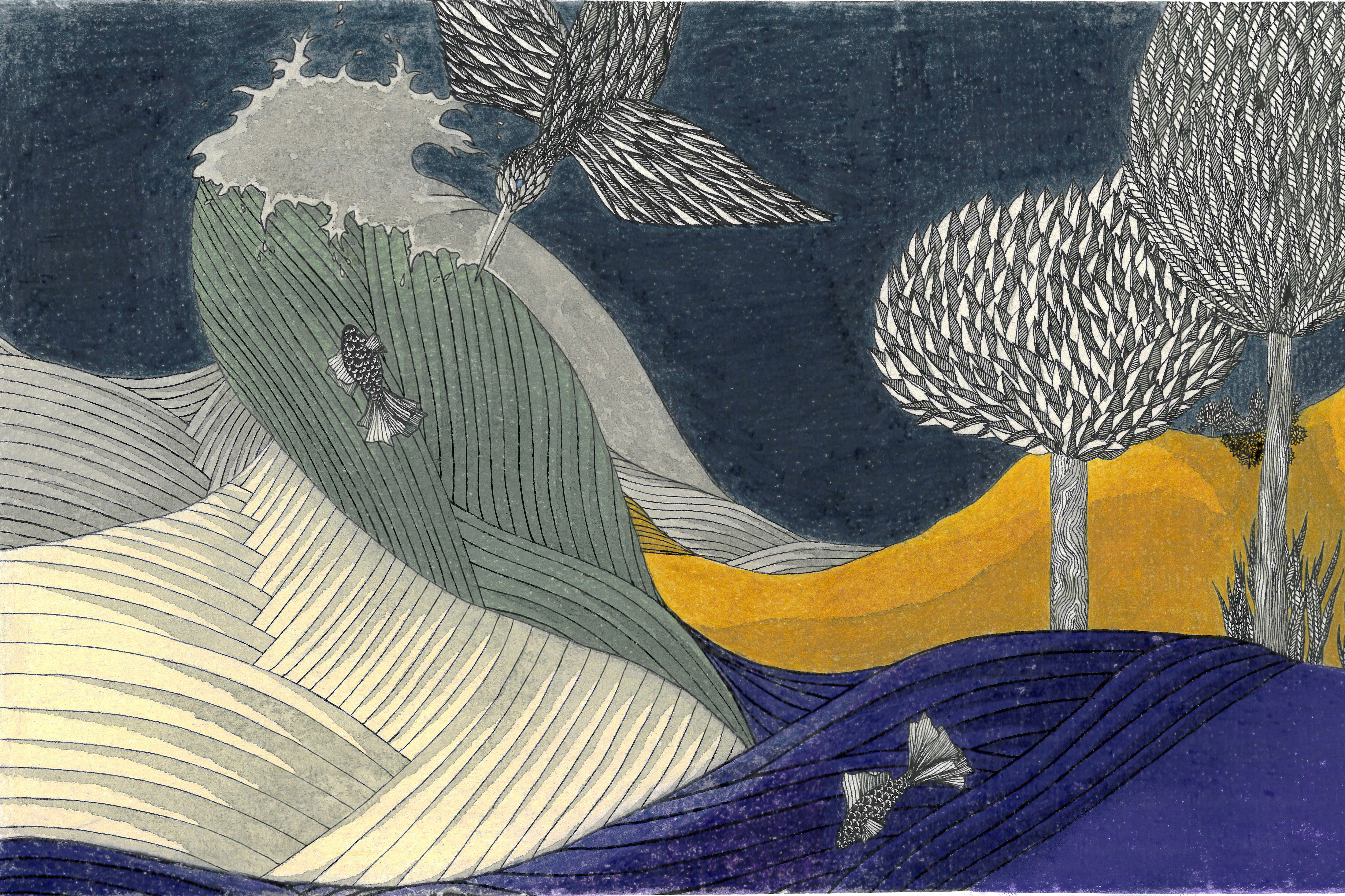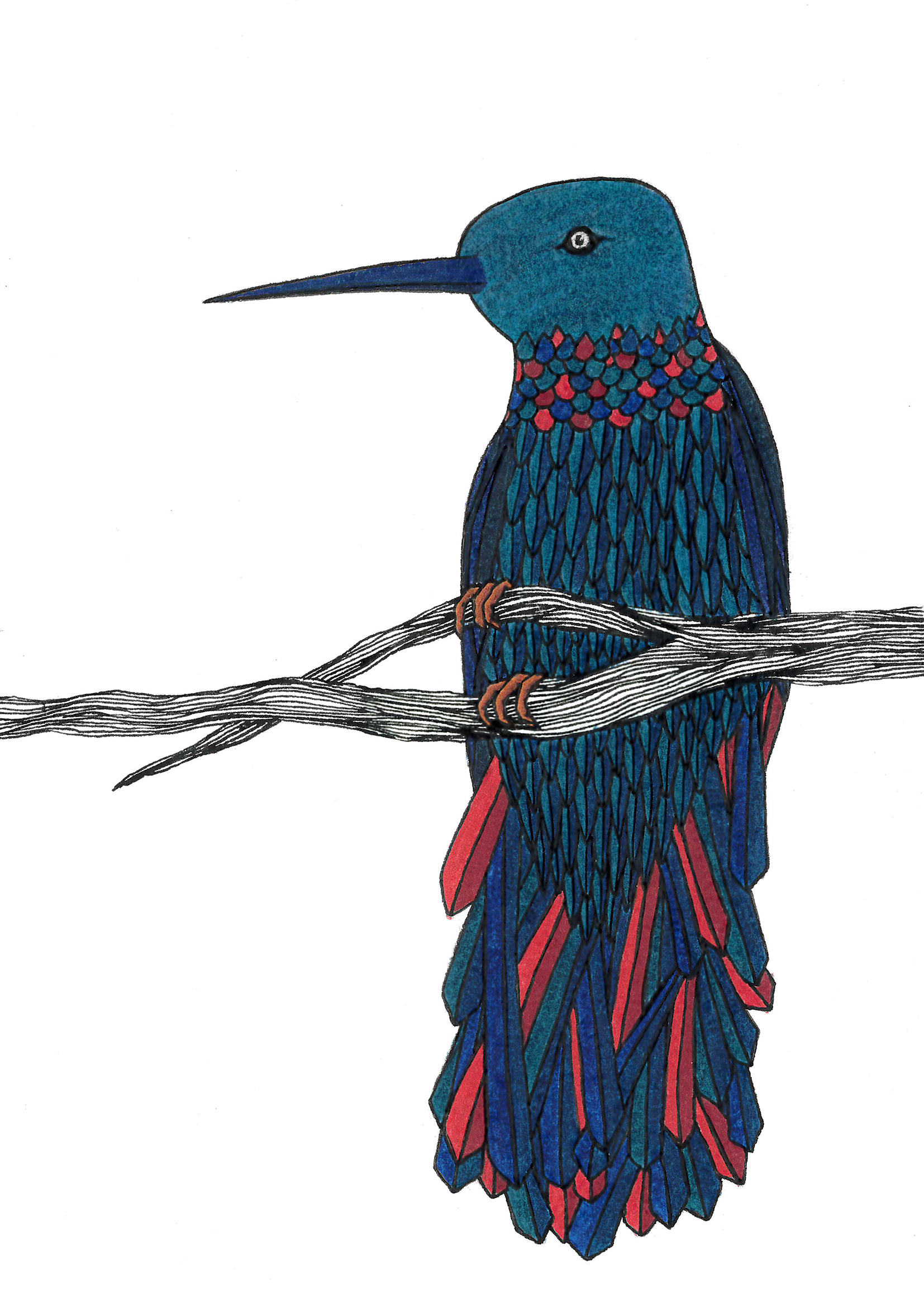 Martin pêcheur – 15cm x 30cm – encre de Chine, crayons de couleur – 80€ : https://astridjo.com/contact/