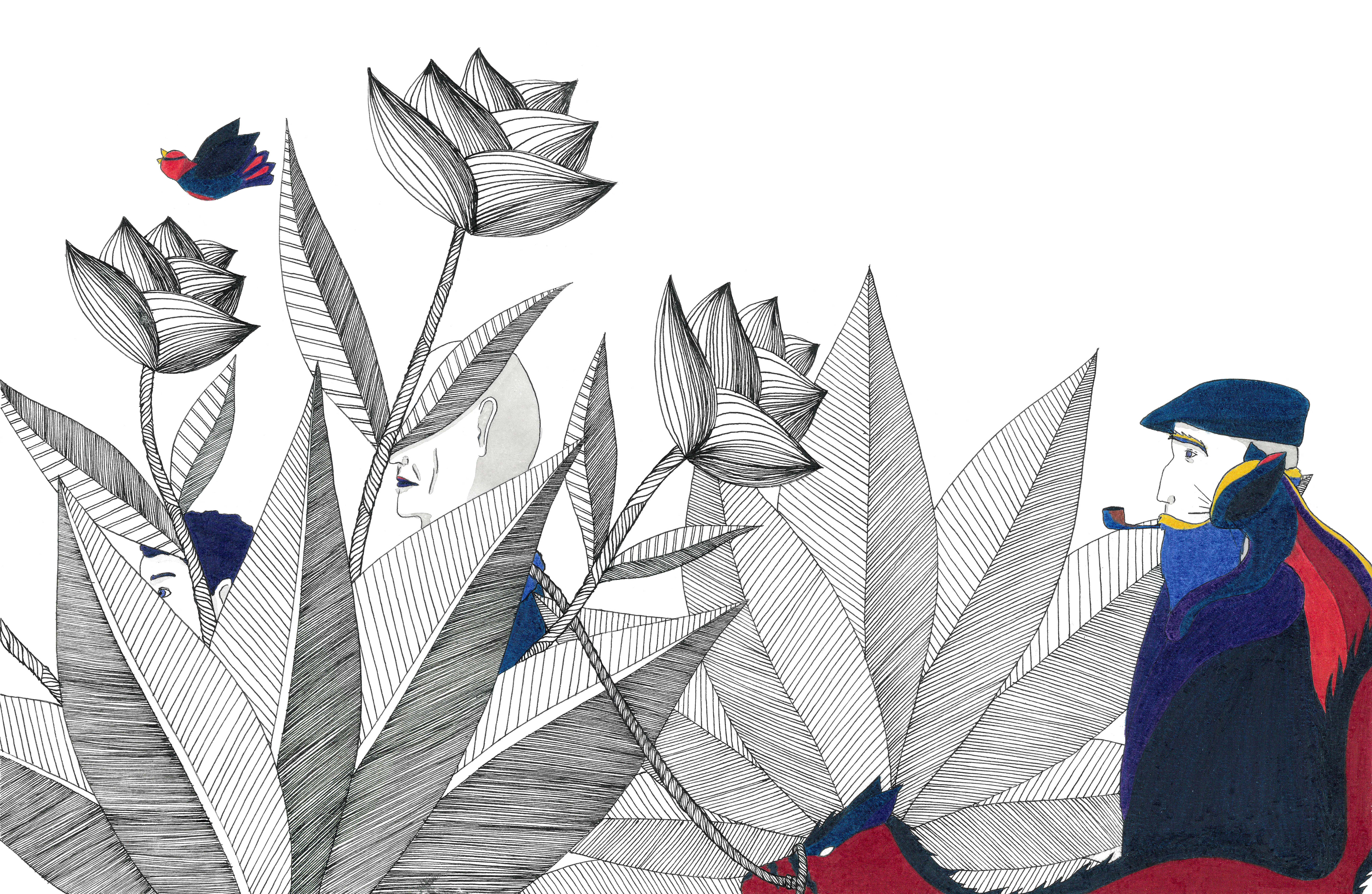 Pierre et le Loup – encre de Chine, crayons de couleur – Illustration d’un conte musical – Just Classik Festival, 2021