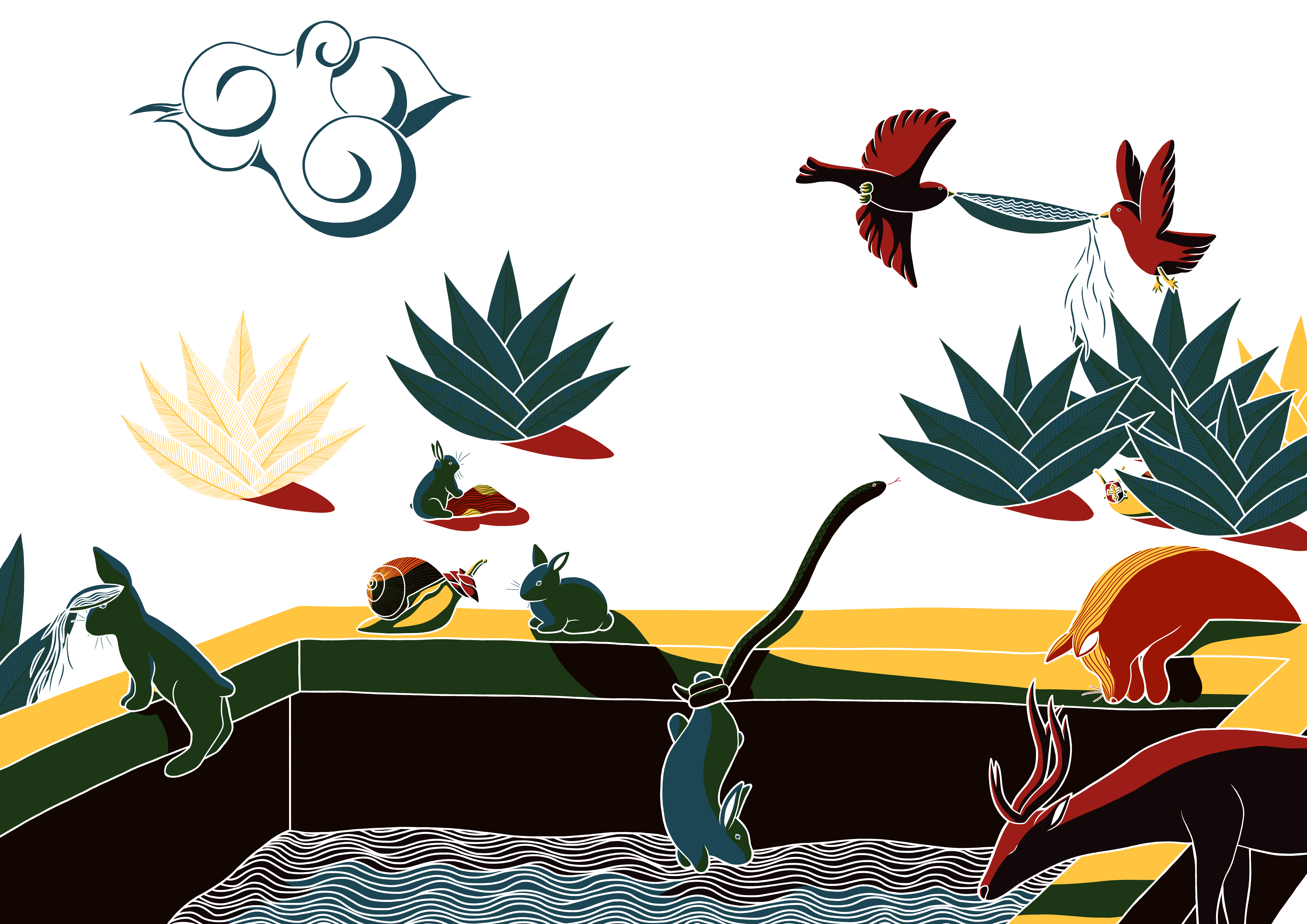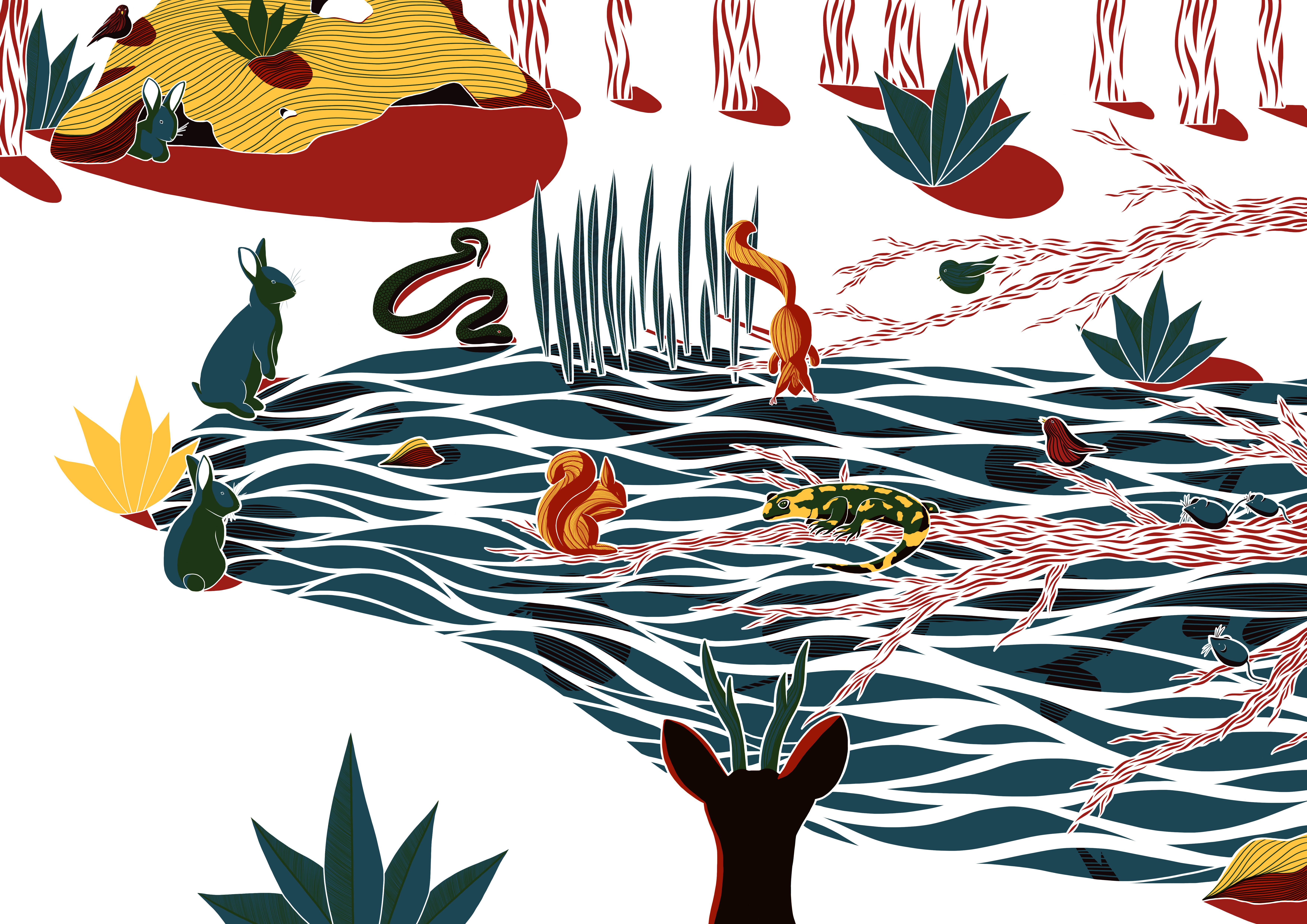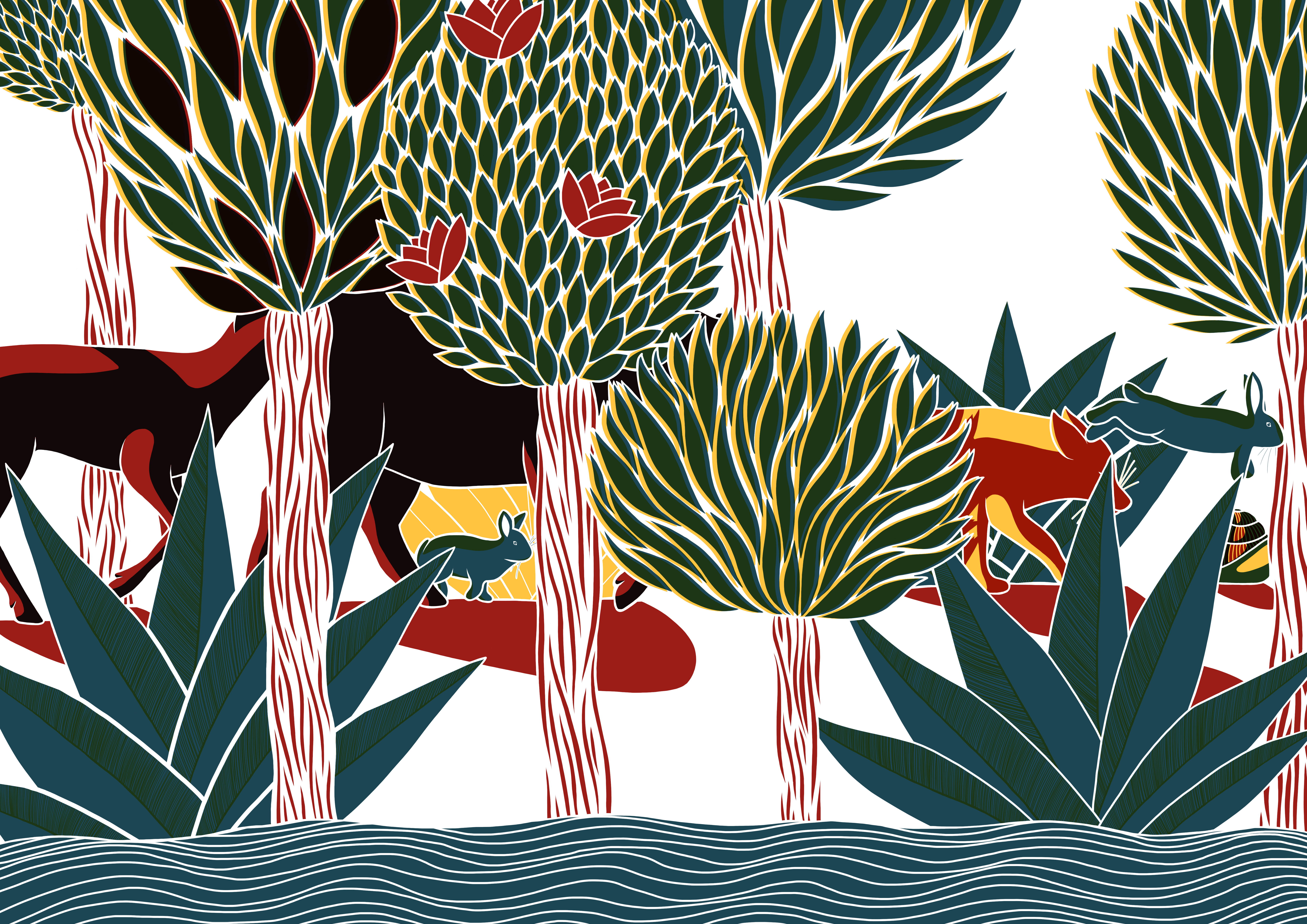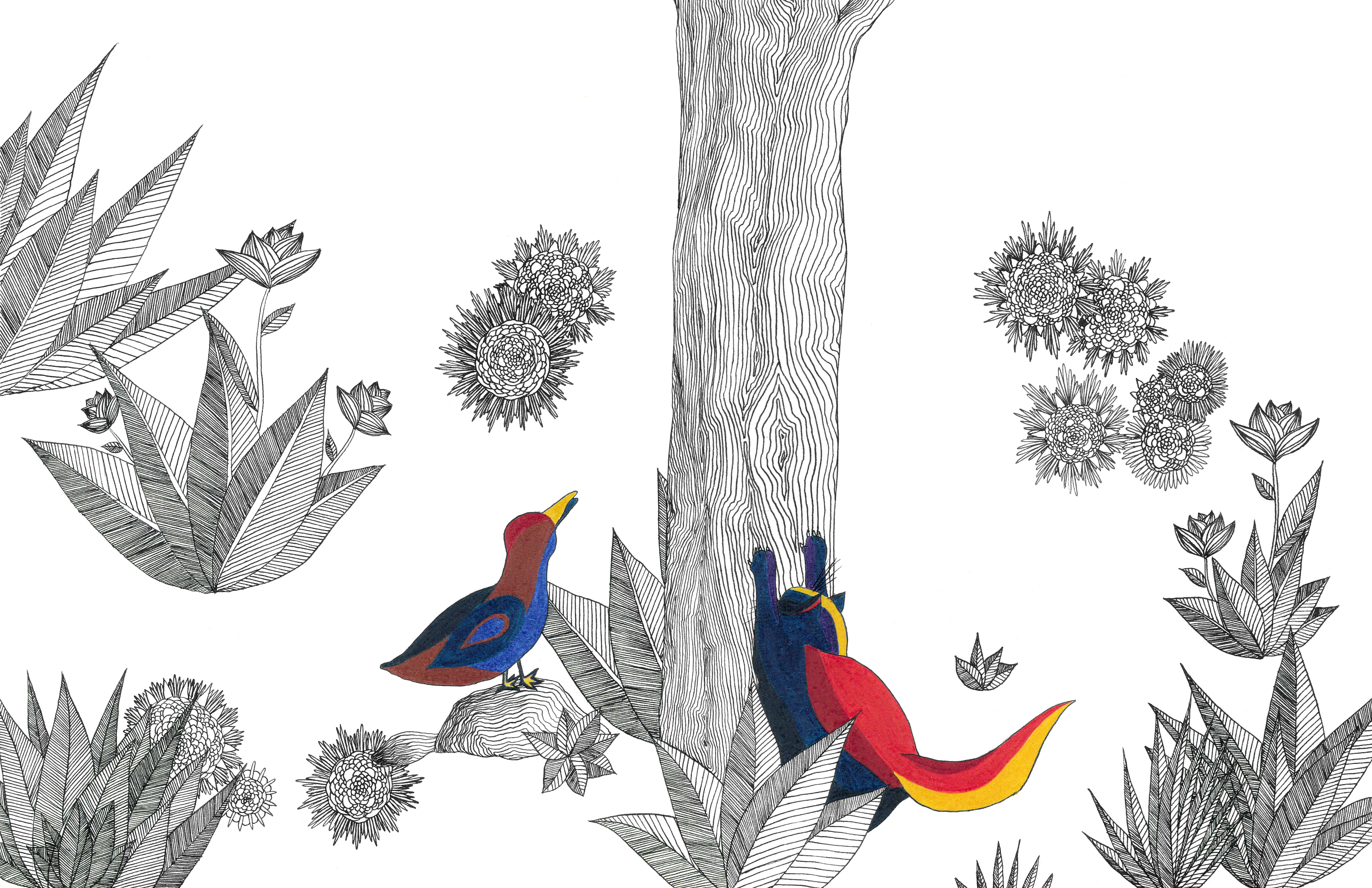 Le carnaval des animaux – encre de Chine, feutres – Illustration d’un conte musical – Just Classik Festival, 2024