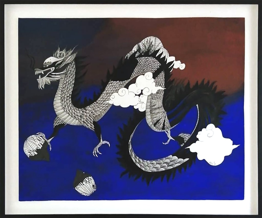 Montreal’s Dragon – 46cm x 55 cm – encre de Chine, crayons de couleur – 550€ : https://astridjo.com/contact/