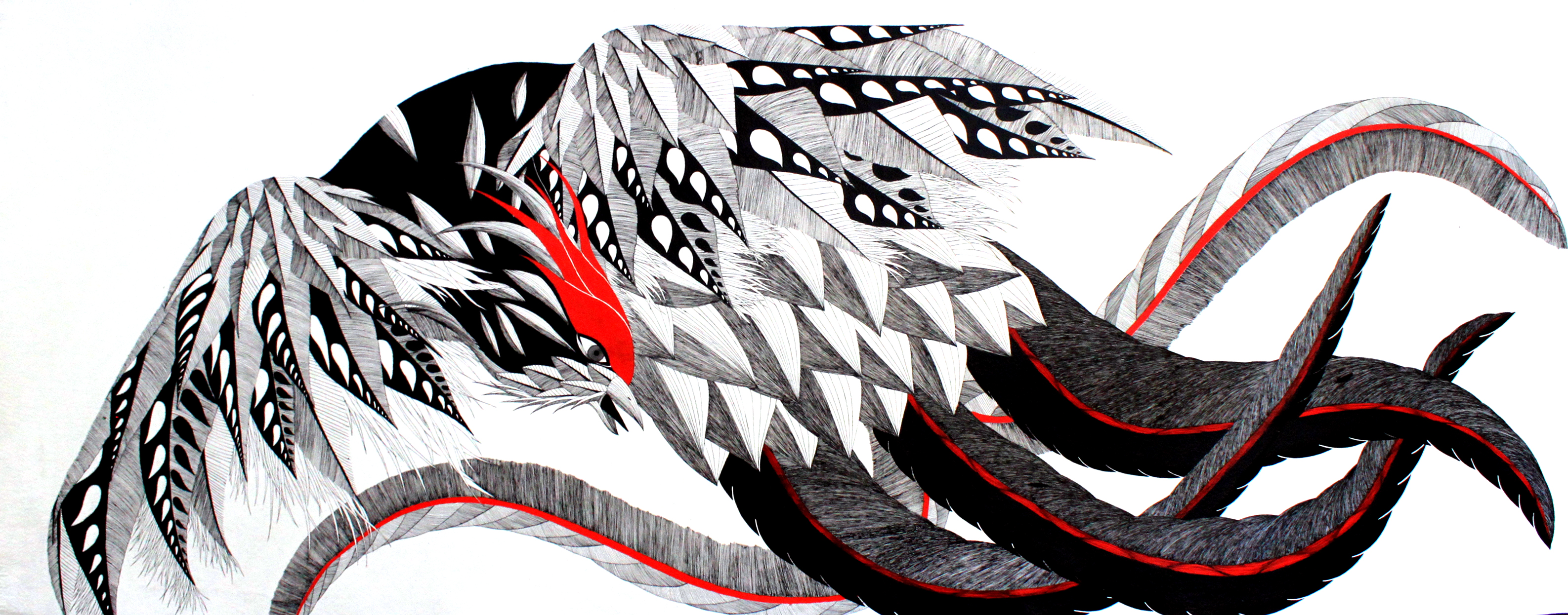 Phénix – 200cm x 80 cm – encre de Chine, acrylique- 550€ : https://astridjo.com/contact/